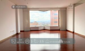 Espectacular apartamento en rosales, a una cuadra abajo de la circunvalar, exterior, séptimo piso, con 220 metros cuadrados, terraza de 12 metros cubierta, balcón, tres habitaciones, principal con walking closet y baño, lasa otras comparten baño, cuarto de servicio, zona de lavandería y cuatro parqueaderos independientes. edificio ofrece vigilancia 24 horas.