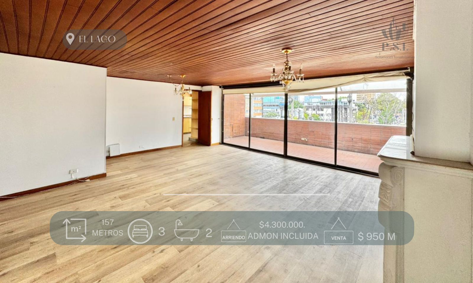 Espectacular apartamento exterior, con amplios ventanales de piso a techo que permiten una excelente entrada de luz natural durante todo el día. Su generosa zona social cuenta con chimenea y acceso directo a una amplia terraza con marquesina, ideal para disfrutar momentos al aire libre con total comodidad.