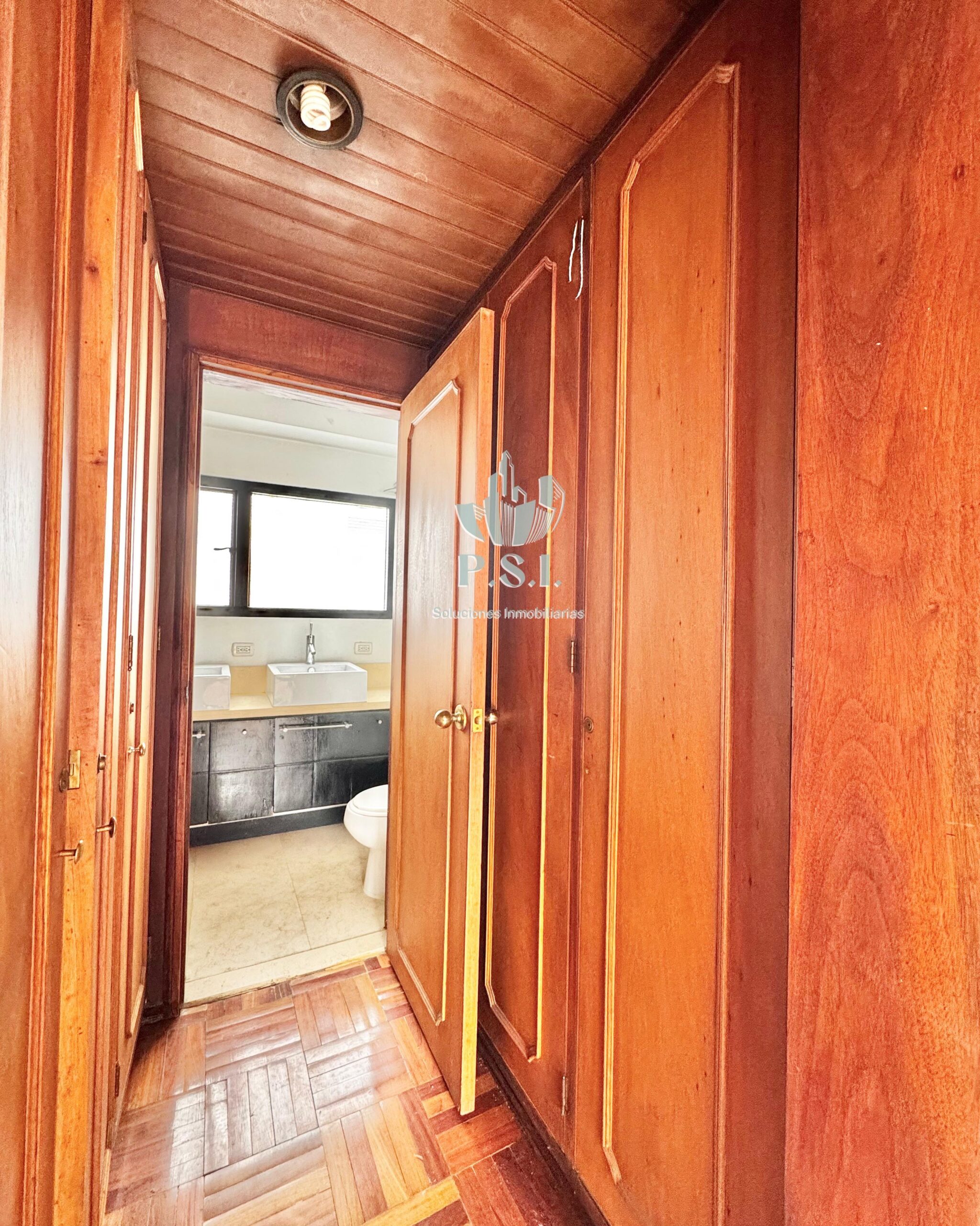 En la zona privada encontramos la habitación principal, amplia y confortable, con walking closet y baño privado con doble poceta. Las dos habitaciones secundarias cuentan con closet y comparten un baño auxiliar. El apartamento también dispone de mueble de linos que aporta mayor organización y almacenamiento.