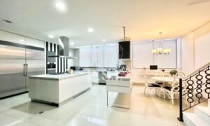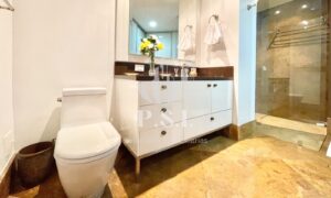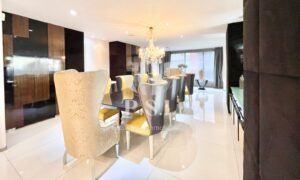 El espacio se destaca por su luminosidad gracias a las ventanas de piso a techo y techos altos. Con dos salas que se abren a la terraza, un comedor independiente amplio y una cocina integral cerrada con comedor auxiliar y barra, este apartamento es perfecto para el entretenimiento. Además, cuenta con un cuarto de servicio con baño, zona de lavandería independiente, estudio, baño social y hasta un teatro con salida a la terraza.