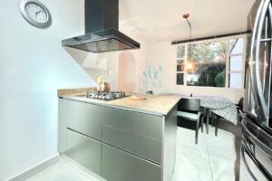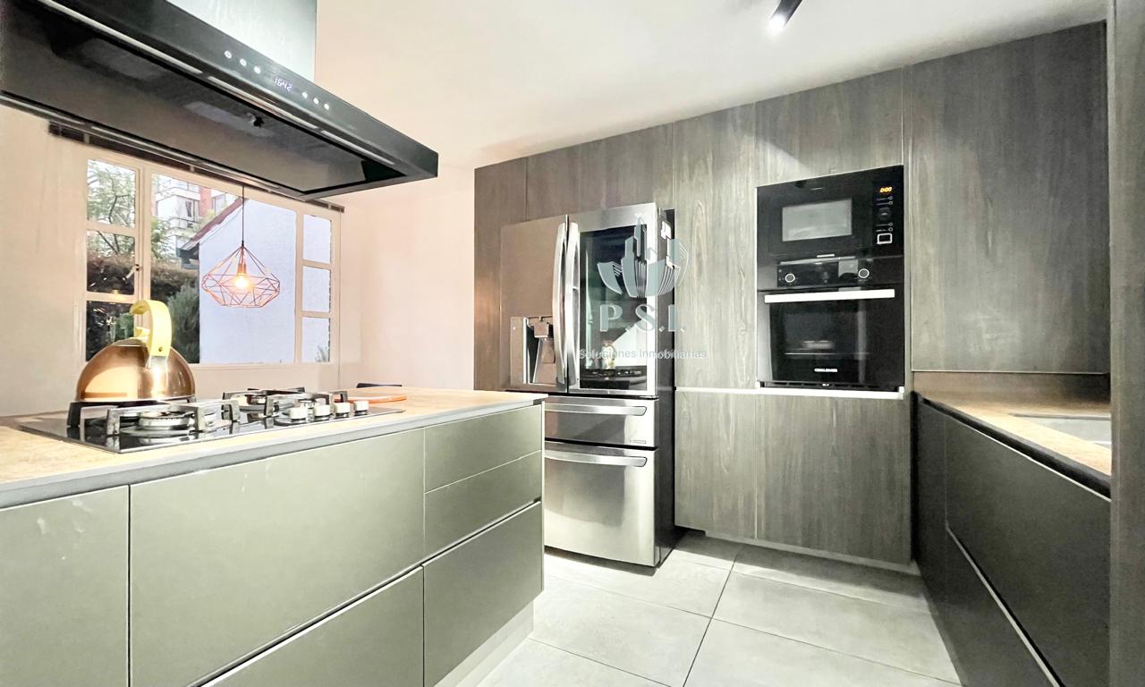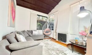 Modera casa estilo townhouse completamente remodelada, cuenta con 3 habitaciones, 4 baños, estudio, cocina abierta con torre de hornos, zona de lavandería independiente, depósito, y un parqueadero. Disfruta de un jardín privado de 9 metros. Además, ofrece seguridad con vigilancia 24 horas para tu tranquilidad.